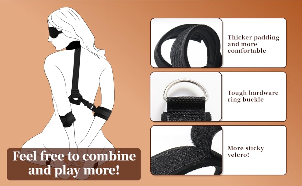 With thicker padding, durable hardware buckles, and stronger Velcro, this bondage set is built for both comfort and restraint. Feel free to mix, match, and explore—the design gives you full freedom to play your way.